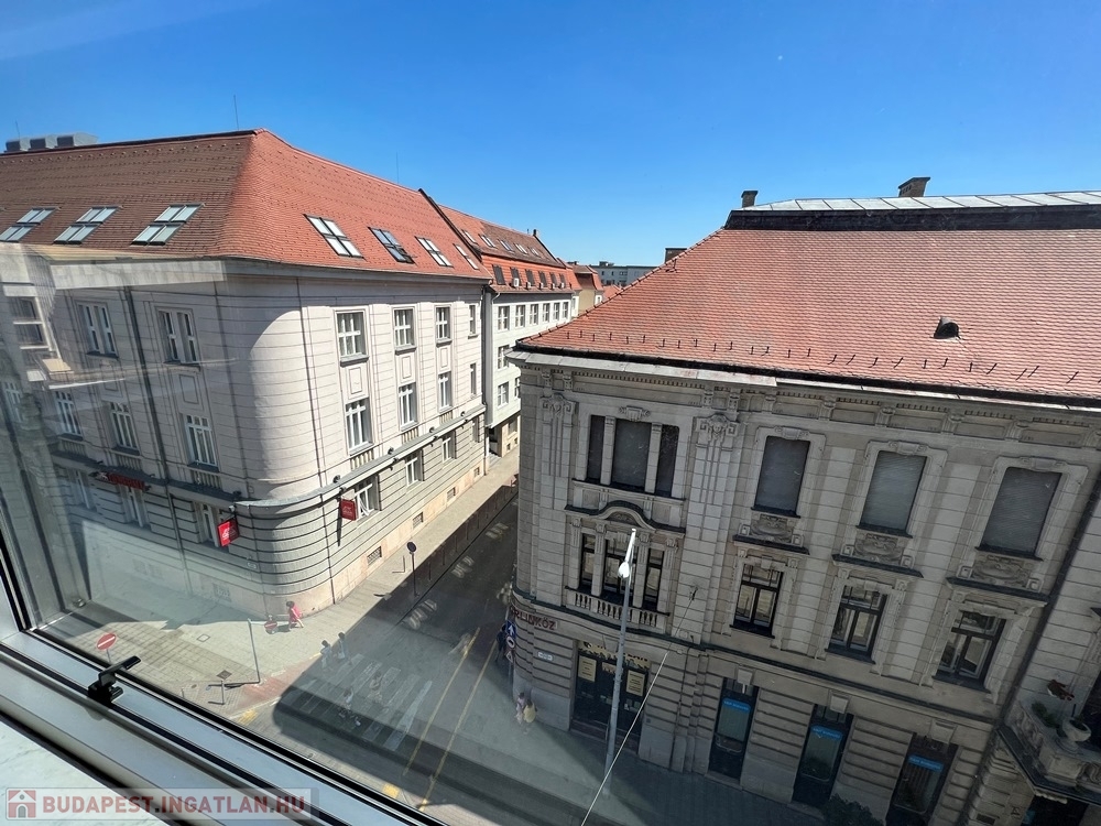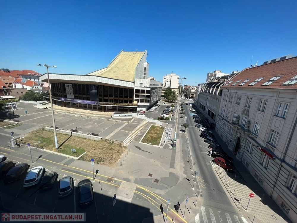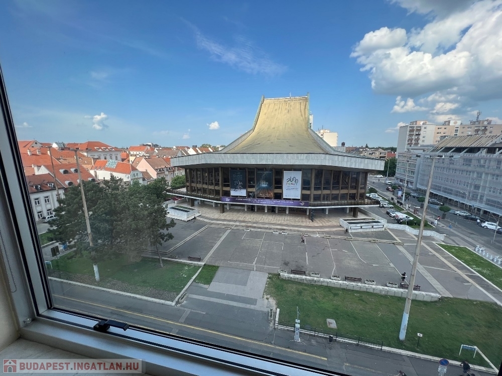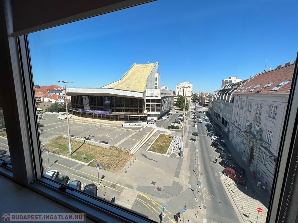 Győr-Belvárosának szívében, Baross úttól, Széchenyi tértől pár másodperces sétatávolságra, rendezett, tiszta irodaház 4. emeletén, nagy üvegfelülettel rendelkező, 18 m2-es bútorozatlan iroda, NEMZETI SZÍNHÁZRA való kilátással, közös tárgyaló használatának lehetőségével kiadó.