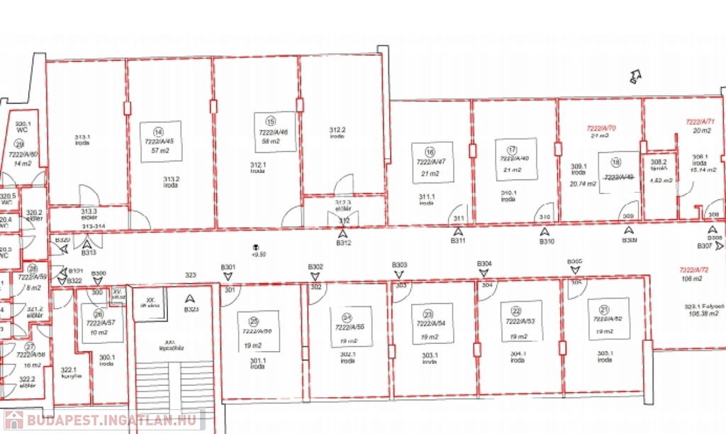 Az iroda a 3. emeleten található,teljes mérete 58 m2.