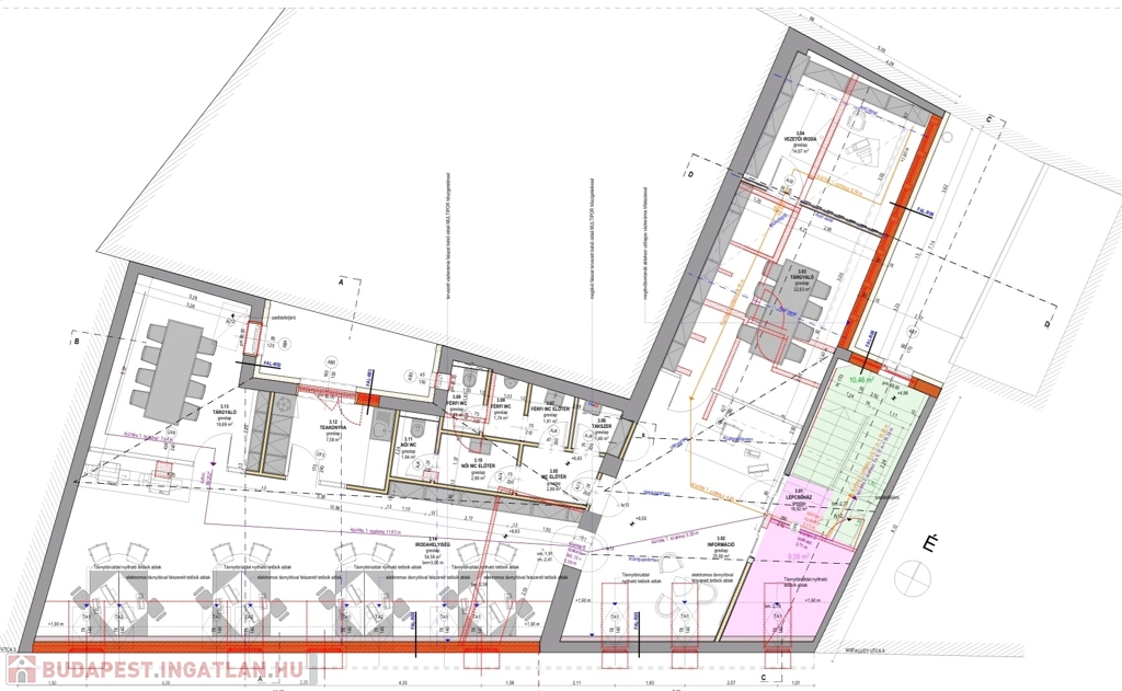 Az ingatlan az épület második emeletén található, amely három nagyobb területű részből áll. Ezen felül kialaításra kerüllt egy vezetői iroda, teakonyha, valamint külön női és férfi mosdók.