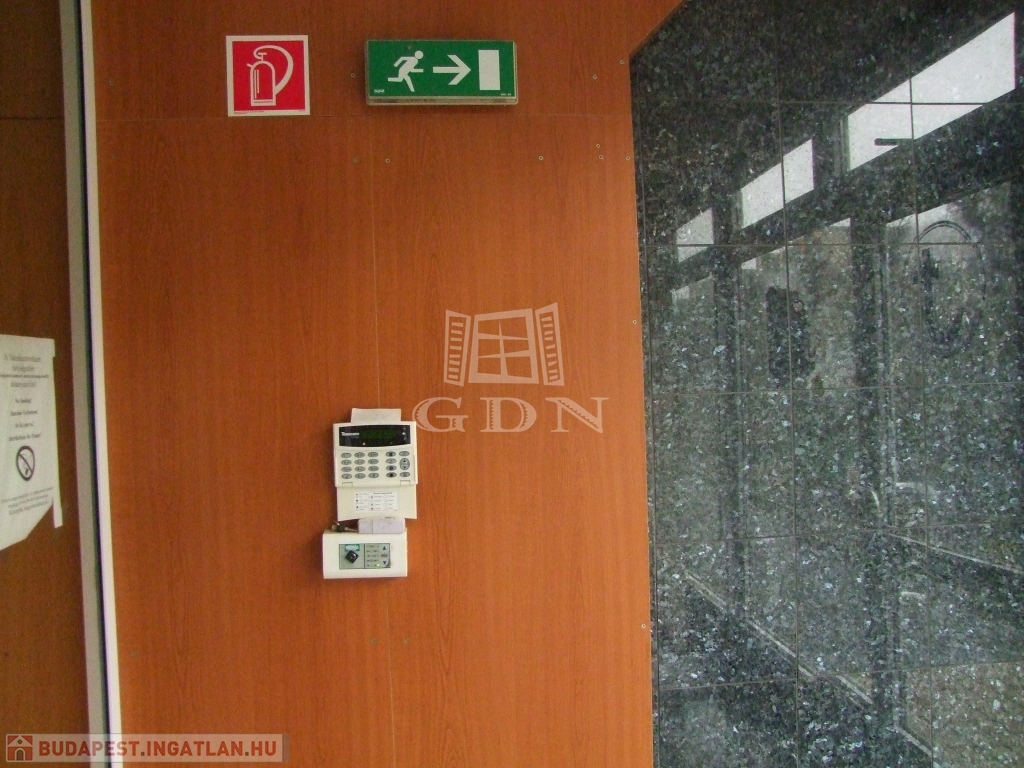 A külön bejáratú emeleti részen irodák, konyha és szociális helyiségek vannak kialakítva. Alapterülete 190 m2, riasztóval és klímával felszerelt.