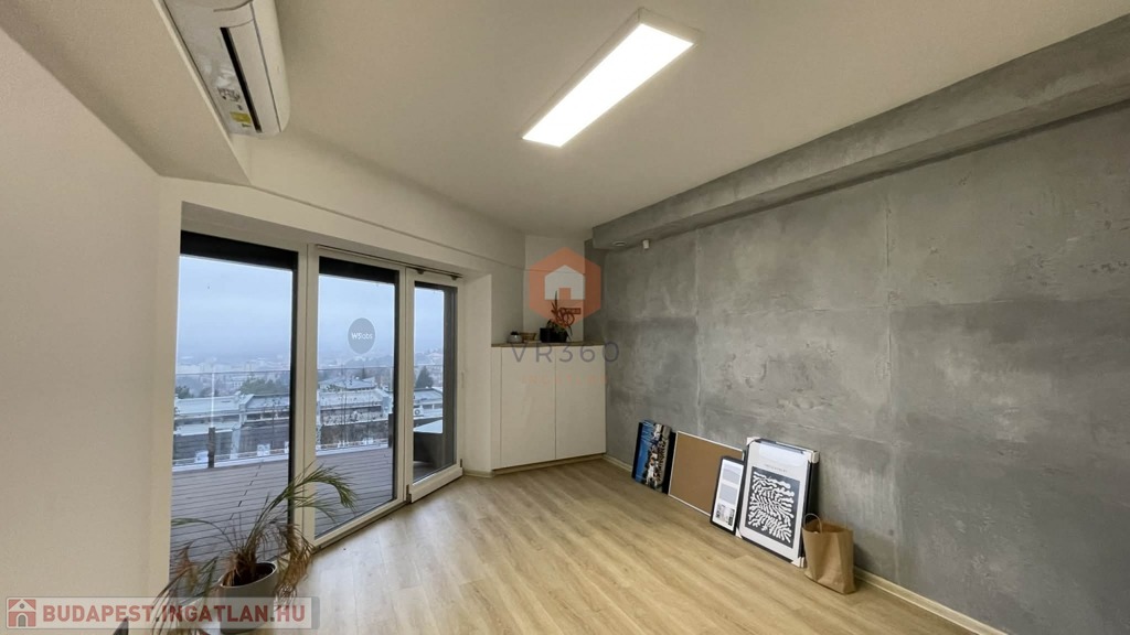 A légkondicionált iroda helyiség akár lakásnak is kiadható, rendkívül tágas és napfényes, déli fekvésének köszönhetően.