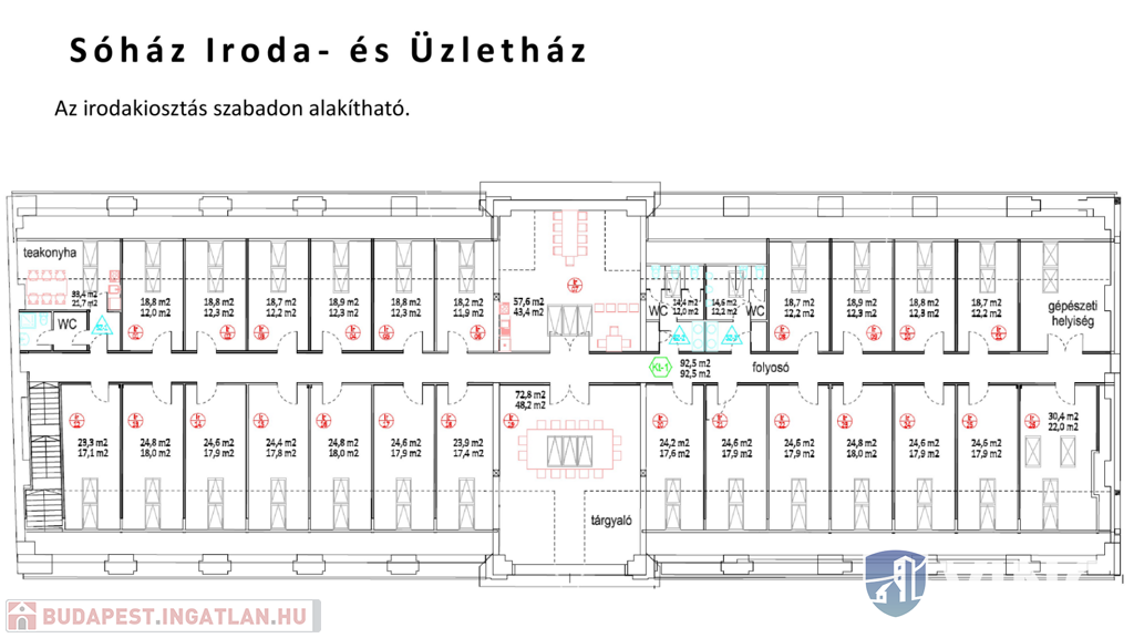 Szeged - belvárosi részén, közvetlen a Tisza parton kiadó irodaház, összesen 550 m2 területű iroda helyiséggel, 24 db külön bejáratú iroda helyiséggel, 2 db tárgyaló helyiséggel, teakonyhával, valamint mosdó helyiségekkel.