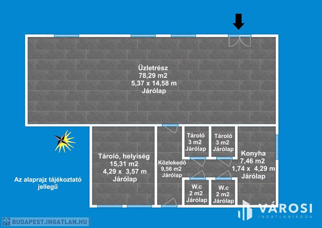 Az üzlethelyiség 1 db óriási üzletrésszel, 1 db helyiséggel (irodarész tároló), 2 db külön Wc-vel, közlekedővel, konyharésszel rendelkezik. Az ingatlan elhelyezkedésre, kialakítása miatt rendkívül sokrétű a felhasználása, amely maximálisan kiemeli ezt az ingatlant az átlagos üzlethelyiségek sorából és egyedülálló választássá teszi azt.