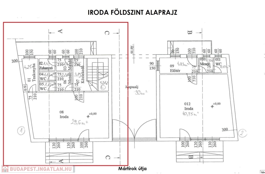 Bip-003221. Mártírok útján 120m2 összalapterületű iroda / üzlethelyiség kiadó!
