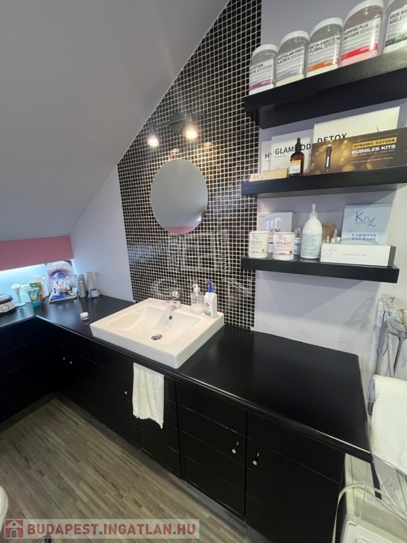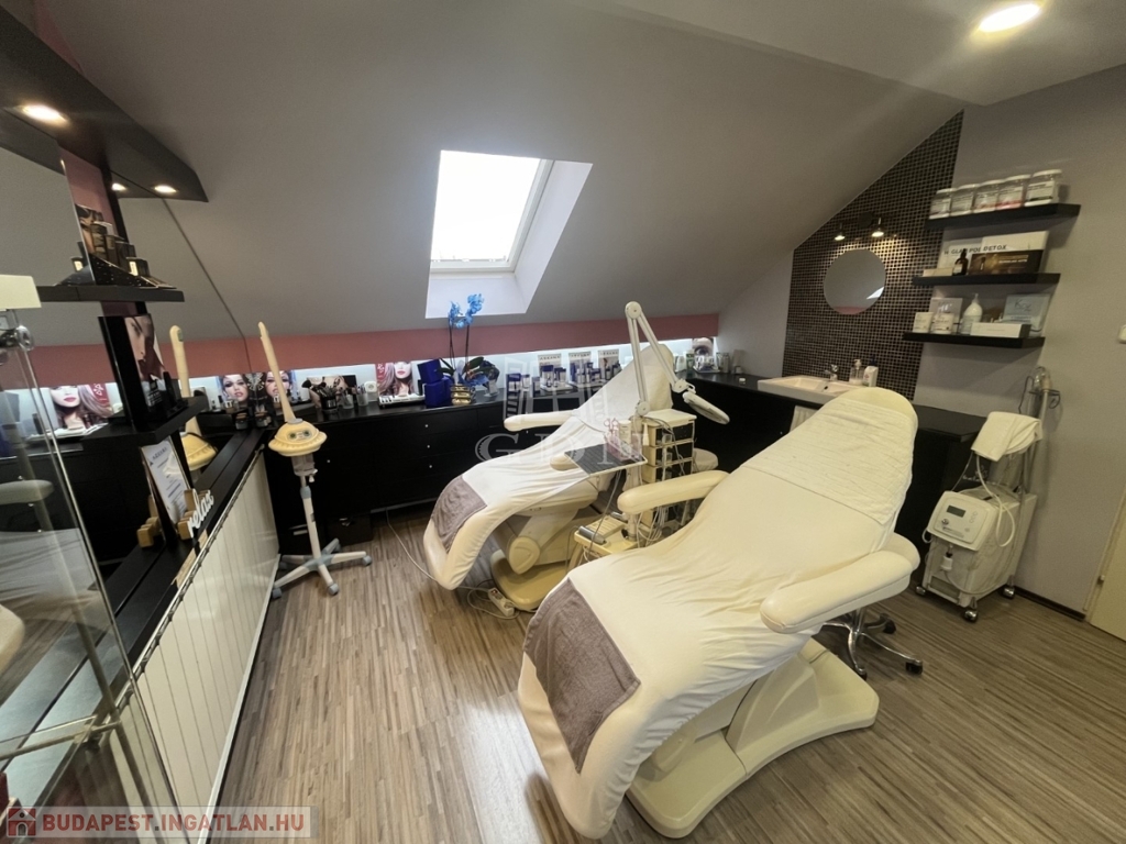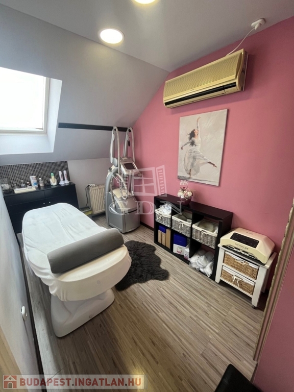‣ tetőtér: kozmetika – 2 külön helyiség, összesen 3 kezelőággyal, mosdó, WC