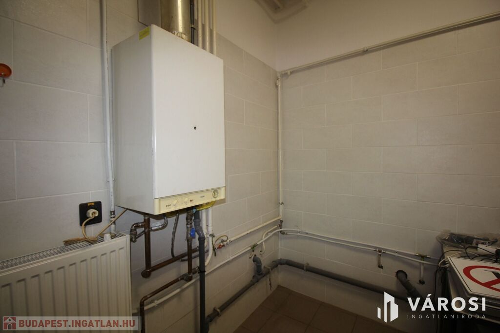 Fűtése gáz-cirkó, a melegvizet bojler biztosítja. A kirakatüvegek hungaropán üvegezésüek, így a rezsiköltség alacsony. A padozat hidegburkolat. Víz, szennyvíz csatorna bekötve. Iroda, 2 mosdó, tusoló áll rendelkezésre. Kamerával, riasztóval felszerelt ingatlan.