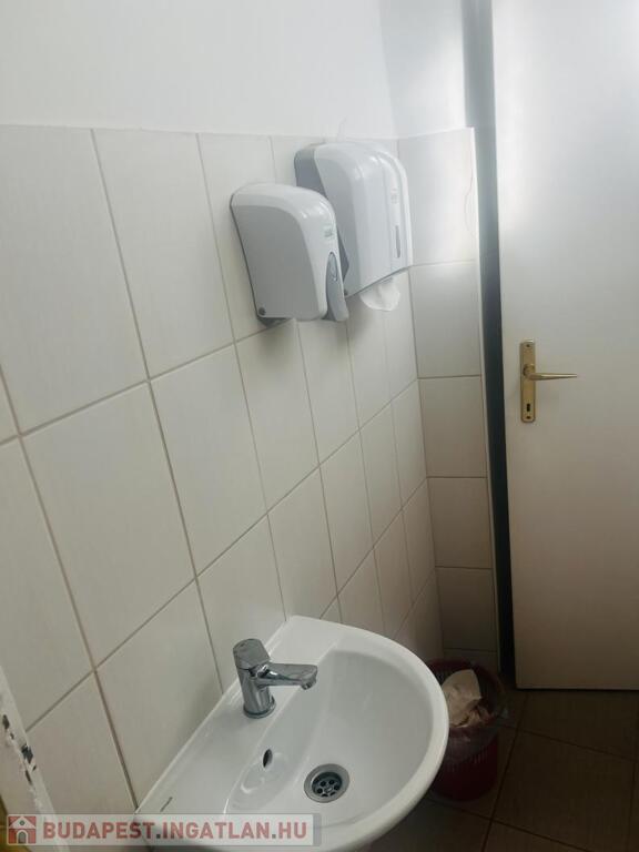 Az irodahelységekhez frissen felújított közös konyha és mosdók használhatók a folyosón.
