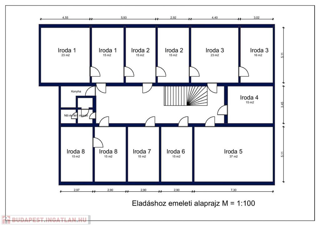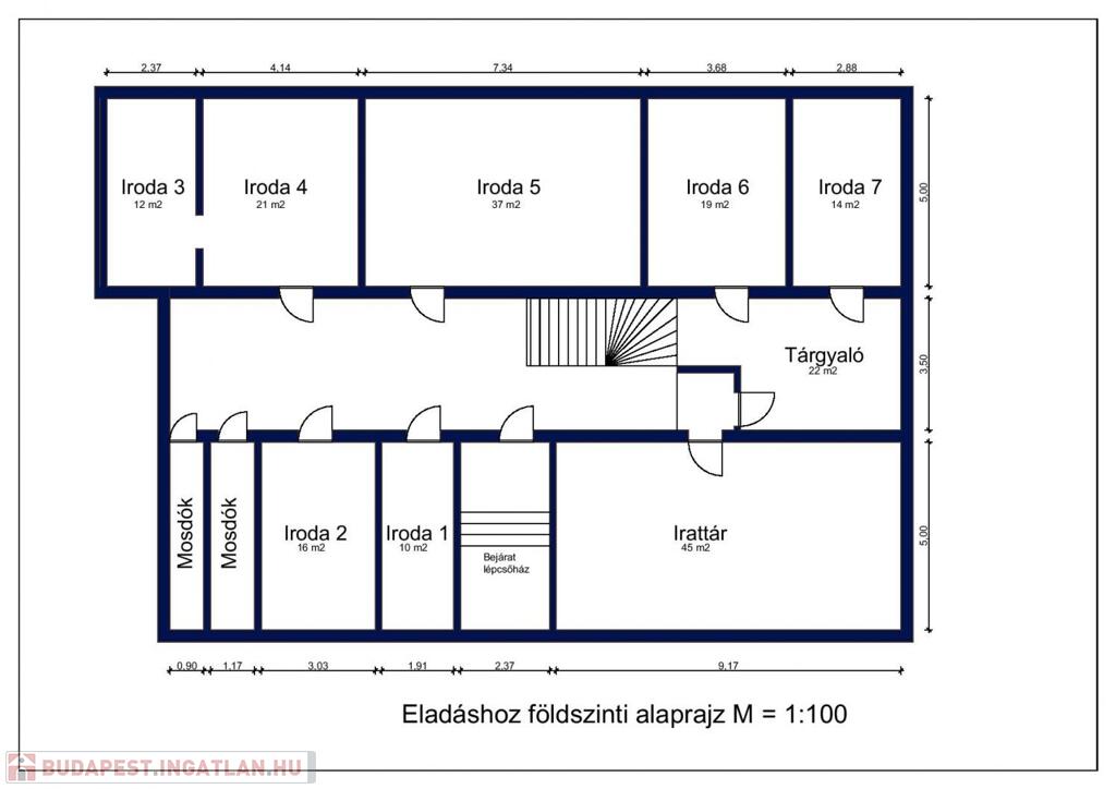 Földszinti iroda 45 m2.(alaprajzon irattár megnevezésű) Bérleti díja 90.000,- Ft+Áfa+rezsi