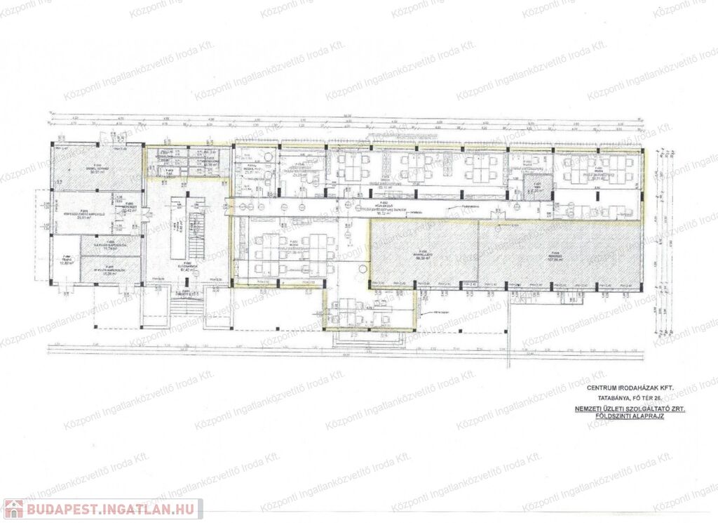 Tatabánya központi helyén a Fő téren lévő irodaház földszinti részén, hosszútávra kiadó, összesen 450 m2-es irodáknak alkalmas helyiség. Az iroda minden helyisége klimatizált. Kisebb terület bérlésére is adott a lehetőség.