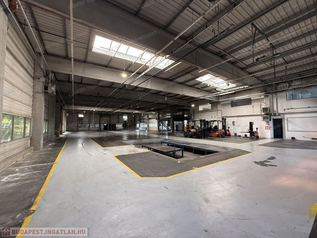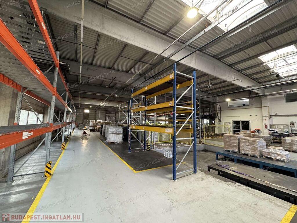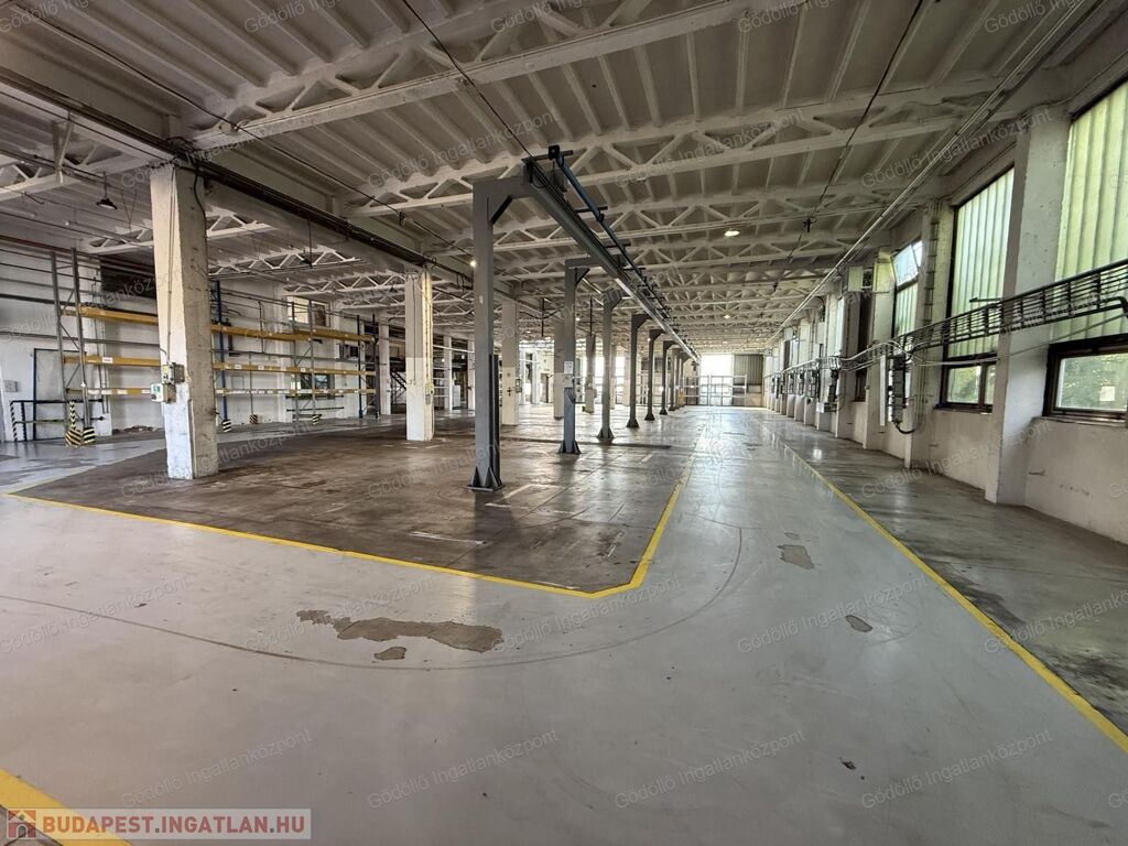 A gyártócsarnokban két daru üzemel, az emeleti irodákból kiválóan belátható az egész üzem. Kiépített kamerarendszerrel, led világításokkal felszerelt.