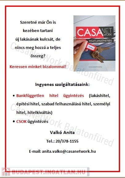 CasaNetWork Balatonfüred Iroda Kiadásra kínálja a