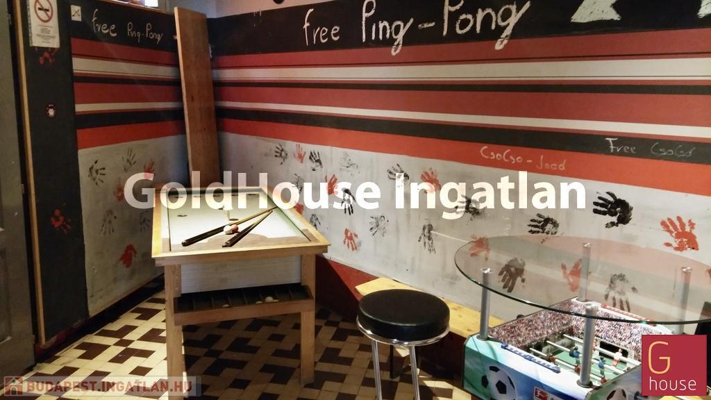 Az ingatlan 110m²-es, melynek földszinti, 70m²-es részén kapott helyet a vendégpult, vendégtér, vendégmosdó, személyzeti öltöző/mosdók és a raktár, míg a további 40m²-es alsó szinten került kialakításra egy ping-pong terem.