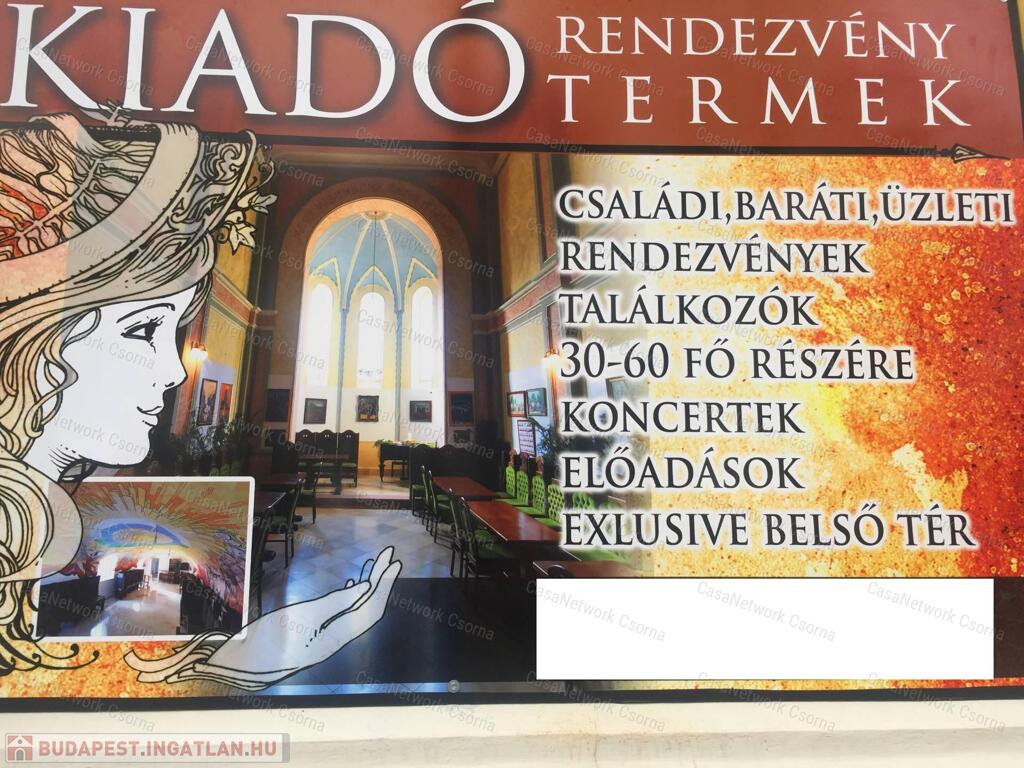Alkalmankénti kiadásra kínálom az alábbi, rendkívüli hangulattal és berendezéssel rendelkező rendezvénytermet.A terem egy 1863-ban épült zárda épület pincéjében lett kialakítva. Teljesen felújított, fogyasztótere berendezett, rendelkezik női, férfi és kiszolgáló személyzeti vizesblokkal. Építészetileg boltozatos, ablakokkal ellátott helyiségcsoport. Ajánlom családi rendezvények, találkozók, céges rendezvények, kultúrált "bulik" megtartására. Cateringes party services kiszolgálásra alkalmas helyiségekkel, gazdasági bejárattal rendelkezik.A meghirdetett ár fiktív ár, a rendezvény jellege, időtartama előrejelzése alapján természetesen a bérbeadó árajánlatot ad !Amennyiben rendezvényt, " bulit " szervez, hívjon bármikor, nézzük meg együtt, egyeztessünk megmutatom bármikor.Simon Kázmér 30/216 5557 [email protected]