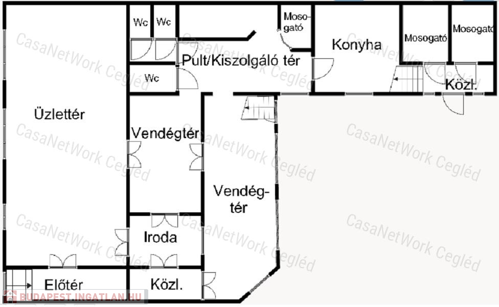Az ingatlan össz. területe 170 nm, melyben átalakítás után továbbra is üzleti célú tevékenység folytatható.