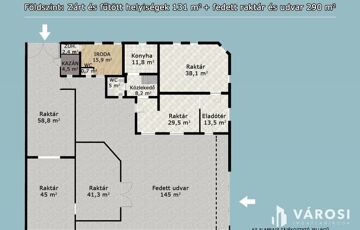 Raktárak = 145 m2 (fedett, külön zárható)
