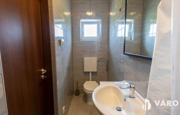 Az ingatlan elrendezése praktikus és kényelmes. A házba belépve az előszobába érkezünk, jobbról helyezkedik el 2 db 12 m2-es szoba, balról pedig egy fürdőszoba ( tusoló+wc ) valamint a tágas amerikai konyhás nappali, ahonnan kijárásunk van egy nagy 20 m2-es teraszra. A fürdőszobában kapott helyet egy 120 literes Ariston WiFi-s vízmelegítő. A ház amerikai konyhás, mely modern és praktikus megoldást nyújt a mindennapi főzéshez.