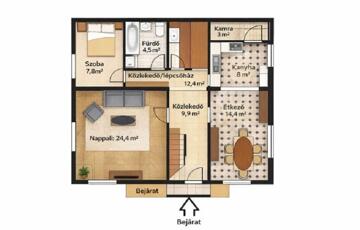 -dupla komfortos, mindkét lakószinten fürdő/wc külön helyiségben