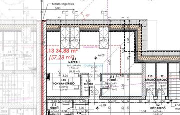 L13 tetőtéri lakás bruttó 57,27 m2, (nettó 34,88 m2).