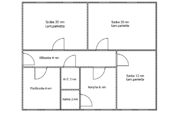 Az ingatlanban 2 szoba, 1 félszoba, konyha, kamra, előszoba, fürdőszoba, külön nyíló W.C. található.