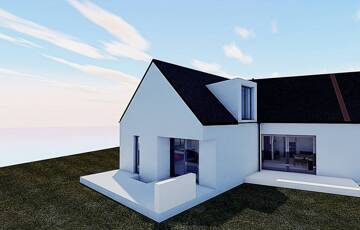 A termálfürdő közelében, új lakóparkban, épülő, zártsorú beépítéses, 2 lakásos, külön bejáratú ház egy 411 m2-es telken fekszik.