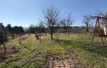 - A telek körbe kerített, felső része sík, hátsó része enyhén lejtős.