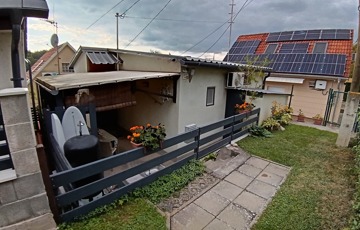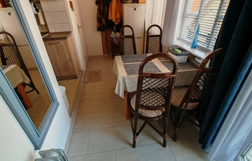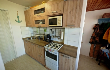 A házban szoba, konyha, fürdő-WC, valamint egy kis étkezőként és szobaként használható helyiség kapott helyet. A fűtés-hűtést új klímaberendezés biztosítja, a melegvízről bojler gondoskodik. A tetőt tavaly cserélték és szigetelték. Gázcsonk az udvaron belül.