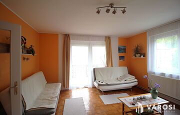 A földszinten 50 m2-es lakás található egy szobával, konyhával, fürdőszobával. Itt még garázs, tárolóhelyiségek, és kazánhelyiség is van.