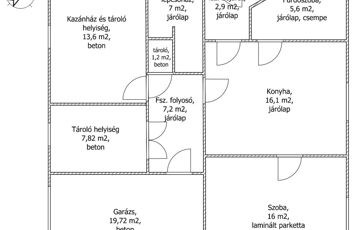 A padlóburkolatok a garázs, és a földszinti tárolók kivételével járólapos és parkettás, laminált parkettás burkolatok.