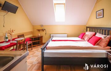 Lokációját tekintve is tökéletes, hiszen a Vár és a Várfürdő 100 méteren belül helyezkedik el, az utcában étterem is üzemel, de a belváros is mindössze néhány perces sétával elérhető.