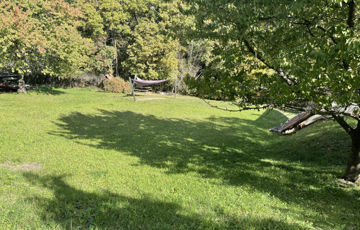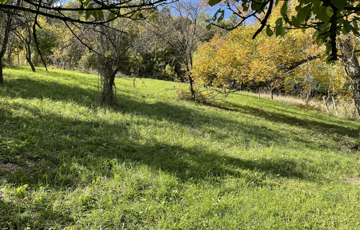 A telek 3127 m2, enyhén lejtő, rendezett. Utcafronti szélessége 37 m, hátrafelé keskenyedik.