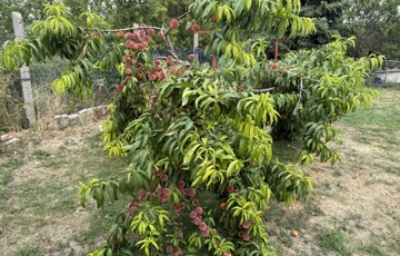 A gondosan karbantartott kertben gyümölcsfák – többek között alma, meggy, sárgabarack és őszibarack – biztosítják a friss termést, míg a veteményes és magaságyás a saját termesztés örömét kínálja.