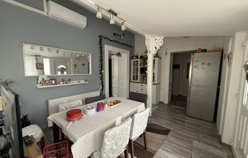 A kisebb, 40 m²-es ház külön bejárattal rendelkezik, saját fürdőszobával, konyhával és egy szobával. Fűtése parapetes gázkazánról történik, klíma és villanybojler szintén rendelkezésre áll.