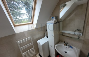 Modern alsó és felső szekrények teszik praktikussá ezt a teret – itt minden adott egy felfrissítő fürdéshez.