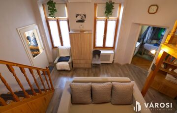 A lakás használati értékét növeli az a belső terasztető, melyről a környező lakások (4 lakás) is nyílnak és egyben teraszként is hasznosítható. A ház a belváros szívében fekszik, Tram-train megálló a földszinti kapu előtt.