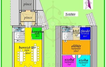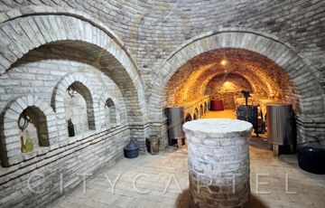 Autentikus hangulatú, gyönyörűen felújított présházat és borospincét kínálunk eladásra a hozzá kapcsolódó összkomfortos lakással, a Tolna vármegyei Bölcskén. A borkultúrájáról híres Duna-parti település a fővárostól mindössze egy órányira fekszik, egyedülállóan szép pincesora számos rendezvénynek ad otthon az év legkülönbözőbb időszakaiban. A rendezett, folyamatosan karbantartott, közművesített utcák mentén szebbnél-szebb présházak sorakoznak, a hűvös pincék mélyén pedig öreg hordók dongái között érik a nemes nedű, melyet a tolnai lankák ősi tőkéin nevelt a nyári napsugár. Ebben a csodálatos természeti környezetben, vén diófák hűs árnyékában áll az épület, amelyet gondos gazdái 2012-ben téglából emeltek. A 90 nm alapterületű, autentikus hangulatú pince masszív falai között szinte megállt az idő. A gyönyörűen faragott, tölgyfából készült kapu, a pácolt gerendák és zsalugáterek, a rusztikus bútorok mind-mind egy letűnt, büszke kor emlékeit idézik. A présház alatt téglával kirakott, hűvös, száraz pince tökéletes klímát biztosít a dongahasú hordók mélyén érlelődő boroknak. A présház tetőterében szigetelt, 90 nm-es, összkomfortos, 2 szobás lakást alakítottak ki a hozzá kapcsolódó nappalival, étkezővel, konyhával, fürdőszobával és WC-vel. A közművesített ingatlan fűtéséről hagyományos fatüzelésű, vízteres kandalló gondoskodik. Az épület melletti térkövezett pihenőhely és a bográcsozó kiváló lehetőséget kínál az itt élők számára a gondtalan pihenésre.