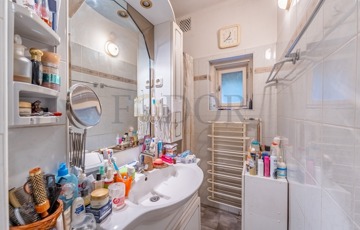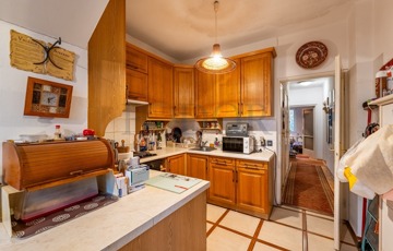 Az emelet 90 m²-es, a belmagasság 2,2 méter. Két szobája van, 16 m² és 9 m² alapterülettel. A zuhanyzós fürdő és WC külön helyiségben található. Az emeleten padlófűtés biztosítja a kényelmet, és légkondicionálással is rendelkezik. Az emelet 2023-ban felújításon esett át, kivéve a konyhát, ahol az eredeti állapot maradt.