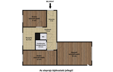 - laminált padló a szobákban, hidegburkolat a többi helyiségben,