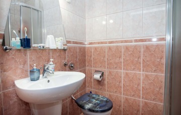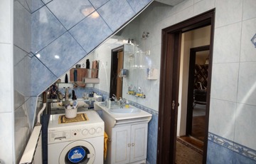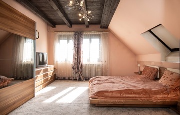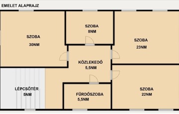 A földszinten zuhanyzós, mosdós toalett található. A lépcsőtér aatti rész kamraként funkcionál. A tágas széles lépcsőtéren keresztül jutunk az emeletre, ahol teljes értékű 4 külön bejáratú hálószoba került kiépítésre, valamint egy tágas kádas fürdőszoba. A ház tetőtere is beépítésre került, buli szobának, vagy egyéb tevékenységre is alkalmas tágas térrel rendelkező helyiség.