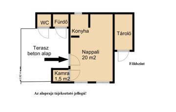 Az alsó részen egy hangulatos nappali, terasz, tusoló+WC, főzőfülke, kamra található, az emeleti részen 1 szoba és egy előtéri rész. Valamint egy tároló helyiség is.