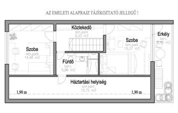 -Emeleti szobák: ~15,00 m2, ~15,00 m2