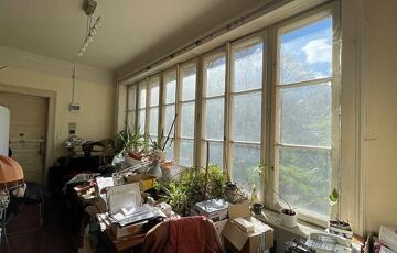 Az ingatlan az épület 1. emeletén található, csendes hátsó kertre és utcai irányba tekint. A lakás zárt lépcsőházból közelíthető meg.