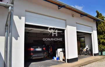 - 100 m2, nagy belmagassággal (5 m-nél magasabb), 2 elektromos garázskapuval (2 db : 3,5 m X 2,5 m)