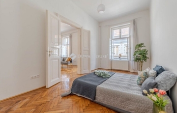 Ez az ingatlan megőrizte eredeti, nagypolgári hangulatát. A lakás tágas, világos nappalija természetes fényben úszik, ideális a pihenéshez vagy vendégek fogadásához. A hálószobák külön nyílóak, a tágas ablakok pedig mindig napfényes, barátságos hangulatot teremtenek. A belső terek rugalmasan alakíthatók, így könnyen személyre szabhatóak.