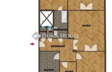 Az előszobából balra nyílik a kamra, a külön WC és a fürdőszoba, szemben a konyha és egy kisebb szoba.