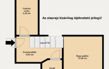 - 1 db 12 m²-es ággyal rendelkező galéria