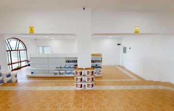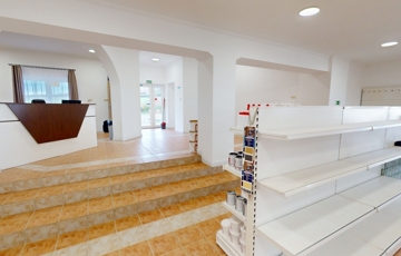 A földszinten találhatunk egy hatalmas nagy teret. Gyönyörű szép burkolattal, fallal, spotlámpákkal. Gyönyörű kilátással a környezetre. Képzeljük el, hogy akár egy étteremként, akár egy bemutató teremként – attól függően, hogy mire kívánjuk használni az ingatlant – kiválóan funkcionálhat a mellette levő külön teremmel, recepcióval, és a hozzá tartozó tárolókkal együtt.