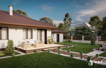 -bruttó 122nm-es családi ház (nettó 96nm-es) 3 lakószobával, fürdőszobával, külön wc-vel, háztartási helyiséggel, közlekedővel és amerikai nappalis konyhával.