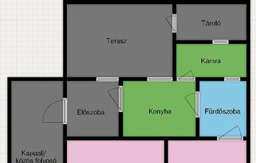 A lakás előtt egy kb. 20 nm-es lekerített terasz helyezkedik el.