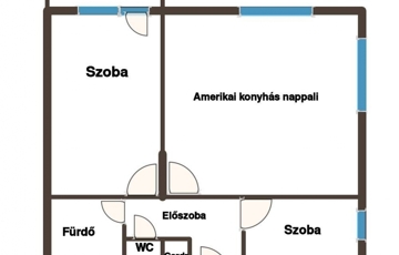 Az ingatlan jelenlegi elosztása: nappali + 1 hálószoba, de kis átalakítással nappali + 2 hálós otthonná alakítható, így ideális lehet kisebb családnak vagy akár befektetésnek is.