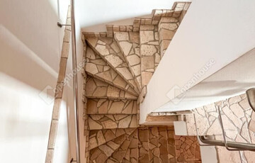 Terméskő díszítés: Az épület alsó részén és a bejárat környékén dekoratív terméskő burkolat található